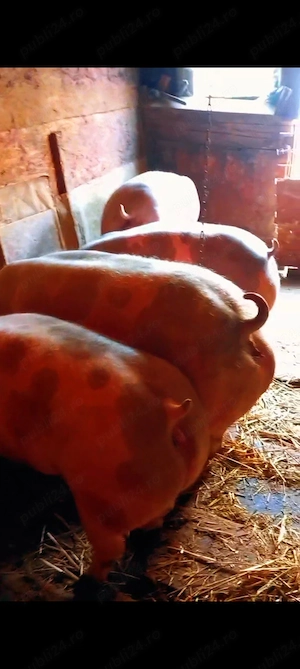 Vând porc Duroc crescut bio numai cu furaje. Are cam 250 kg prețul fiind de 12 lei pr kg.