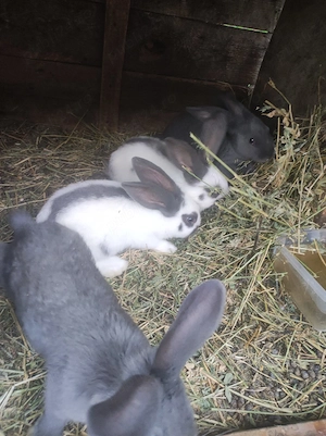 avem iepuri de rasa Fluture german pe albastru și pe alb cu albastru crescuți cu cereale și lucerna au 2 luni detali la se dau și la pachet toți 4 înafara de mama lor