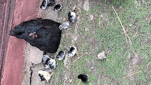 Vând closca rasa Australorp cu 10 pui Australorp +5 rasa mixta ...preț total 330 lei