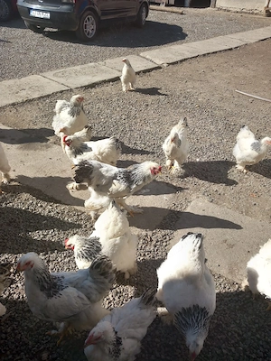 rasă brahma cu pestriță românească, la maturitate ajung la 4 kg. se hrănesc cu porumb, grâu, floarea soarelui, e.t.c.