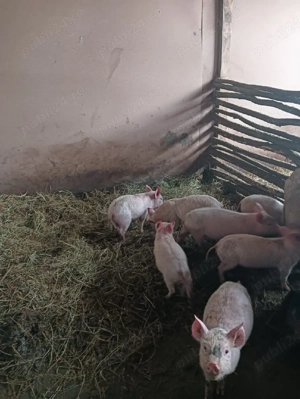 vând 3 bucăți purcei din scroafa pietrean și vier landras, din montă naturală, 1 scrofița albă , și 2 masculi. au 11 săptămâni,mănâncă foarte bine și umed și uscat, greutate peste 30 kg bucata.