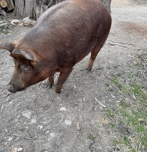 Vând porc Duroc crescut bio numai cu furaje. Are cam 250 kg prețul fiind de 12 lei pr kg.