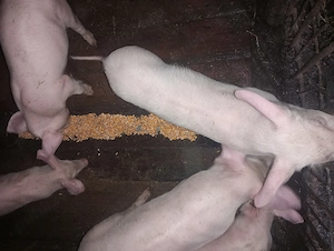 vand porci crescuti natural, la gospodarie, 3 bucati. Au in jur de 150 de kg, pretul este negociabil, pentru detalii