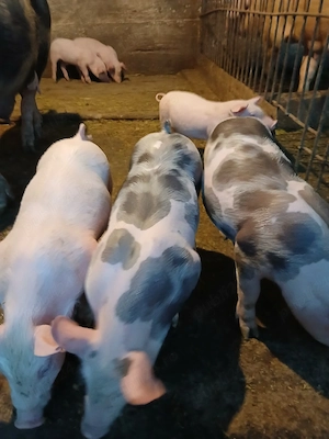 Vând opt purcei de opt săptămâni șapte masculi și o femelă, înțărcati și foarte mâncăcios.pretul este de 300 lei bucata. Rasă de duroc cu landras.