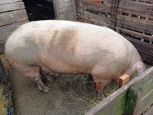vând purcea pietrean crescută doar cu cereale bio (porumb,grau,orz și floarea soarelui) are în jur de 300 de kg vârstă un an nu a fătat niciodată
