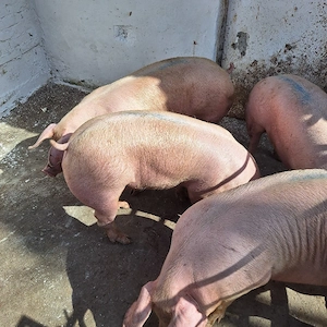 5 scrofite cu greutate intre 65-90 kg. Foarte bune pentru monta sau pt sacrificat. Rasa de carne. Se afla in Turburea, Jud Gorj