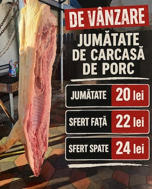 vand jumatate sau sfert fe porc (carcasă) JUMATE 20lei kg SFERT FAȚĂ 22LEI KG SFERT SPATE 24LEI KG