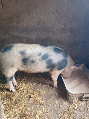 Vand porci din monta artificiala de pietrain: -1 porc castrat de 120 de kg+ -, pret 15 lei kg; -1 porc in jur de 100 de kg, pret 16 lei kg.