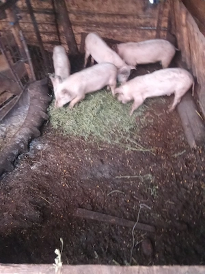 Scroafa landrace montată cu porc din rasa duroc, 5 purcei de 3 săptămâni.