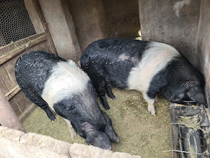 Vand porci, rasă pietrean între 80 și 130 kg preț 15 lei kg.