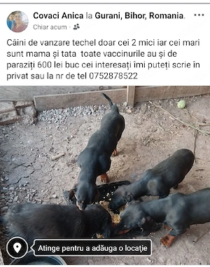 câini de vanzare techel doar cei mici iar cei mari sunt mama și tata toate vaccinurile au și de paraziți 600.lei buc cei interesați a-mi puteți scrie în privat sau la nr