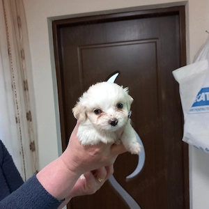 Trei puișori bishon maltez toy,fetițe și doi băieței,au șase săptămâni,mănâncă hrană umedă și uscată,sunt foarte jucăuși și sănătoși și își fac nevoile la pled sau afară.