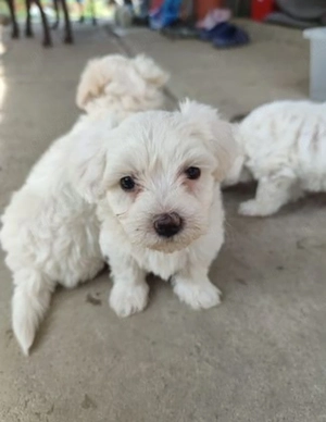 puiuți de bichin maltez talie mica(3, - 3.5kg la maturitate). puii se dau începând cu 7 aprilie, la vârsta de 6 săptămâni, deparazitați, vaccinați și cu carnet de sănătate. dețin ambii părinți care se pot vedea la fata locului