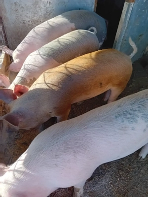 Crescuți cu porumb,soia,floarea soarelui,tărță ,amestecate ,luțărnă,și lături rasă Landras cu Duroc.
