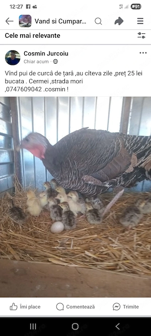 vînd pui de curc de țarâ.au cîteva zile ,preț 25 lei bucata , .