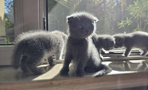 3 fetite si 1 baietel Scottish Fold 7 săptămâni, mănâncă și sunt obișnuiti cu litiera.