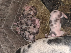 Vând purcei rasa Pietrain de 7 săptămâni. Preț 500 lei perechea.