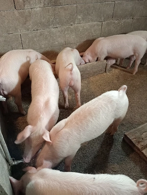Vând patru grăsuni,doi masculi castrati și două femele, provin din mamă Landrace montată artificial cu Pietrain,au 20 săptamani 50-60 kg.